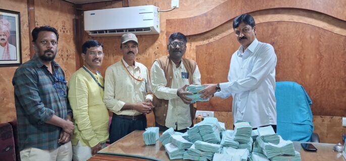 ಗೋಕಾಕ ನ 26 : ಎಸ್.ಎಸ್.ಎಲ್.ಸಿ ವಿದ್ಯಾರ್ಥಿಗಳಿಗೆ ಗೋಕಾಕ ಶೈಕ್ಷಣಿಕ ವಲಯದ ವಿನೂತನ ಕಾರ್ಯಕ್ರಮದಲ್ಲಿ ಒಂದಾದ “ಪತ್ರದಿಂದ ಹತ್ರ” ಕಾರ್ಯಕ್ರಮಕ್ಕೆ ಶಾಸಕ ರಮೇಶ ಜಾರಕಿಹೊಳಿ ಅವರು ಬುಧವಾರದಂದು ನಗರದ ತಮ್ಮ ಗೃಹ ಕಛೇರಿಯಲ್ಲಿ ಪತ್ರಗಳನ್ನು ಶಿಕ್ಷಣಾಧಿಕಾರಿ ಜಿ.ಬಿ.ಬಳಗಾರ ಅವರಿಗೆ ಹಸ್ತಾಂತರಿಸುವ ಮೂಲಕ ಚಾಲನೆ ನೀಡಿದರು.