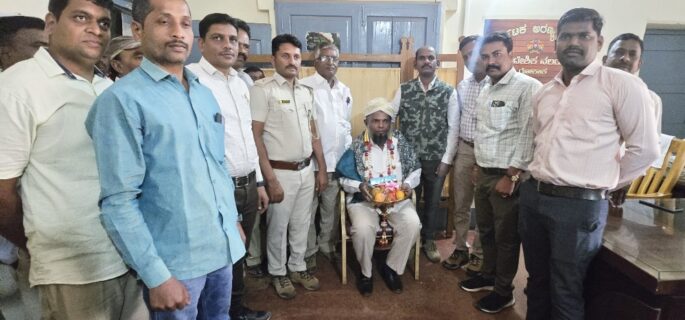 ಗೋಕಾಕ ಜ 31 : ಘಟಪ್ರಭಾ ವಿಭಾಗದ ಗೋಕಾಕ ವಲಯದ ಅರಣ್ಯ ಇಲಾಖೆಯಲ್ಲಿ 34 ವರ್ಷಗಳ ಸೇವೆಯ ನಂತರ ಸೇವಾ ನಿವೃತ್ತಿ ಹೊಂದಿದ ಅರಣ್ಯ ವೀಕ್ಷಕ ಅಬ್ದುಲರಜಾಕ ಜಾಂಬೋಟಕರ ಅವರಿಗೆ ಅರಣ್ಯ ಇದಾಖೆಯ ಸಿಬ್ಬಂದಿಗಳು ಶನಿವಾರದಂದು ನಗರದ ವಲಯ ಅರಣ್ಯಾಧಿಕಾರಿಗಳ ಕಛೇರಿಯಲ್ಲಿ ಸತ್ಕರಿಸಿ, ಬೀಳ್ಕೋಟರು.