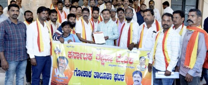 ಗೋಕಾಕ:ಕರಾಳ ದಿನಾಚರಣೆಗೆ ಅನುಮತಿ ನೀಡದಂತೆ ಕರವೇ ಪ್ರತಿಭಟನೆ