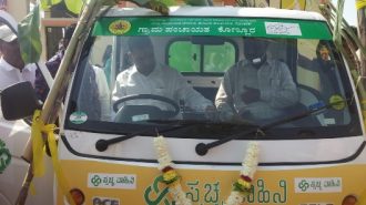 ಗೋಕಾಕ:ಕಸ ವಿಲೇವಾರಿ ವಾಹನವನ್ನು ಚಲಾಯಿಸುವ ಮೂಲಕ ಘನತ್ಯಾಜ್ಯ ವಿಲೇವಾರಿ ಘಟಕ ಉದ್ಘಾಟಿಸಿದ ಅಂಬಿರಾವ