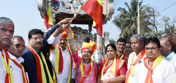 ಗೋಕಾಕ:ನಾಡದೇವಿ ಭುವನೇಶ್ವರಿ ಹಾಗೂ ಸಮ್ಮೇಳನದ ಸರ್ವಾಧ್ಯಕ್ಷರ ಮೆರವಣಿಗೆಗೆ ಶಾಸಕ ರಮೇಶ ಜಾರಕಿಹೊಳಿ ಚಾಲನೆ