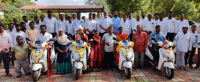 ಗೋಕಾಕ:ಅಂಗವಿಕಲರಿಗೆ ಯಂತ್ರಚಾಲಿತ ದ್ವಿಚಕ್ರ ವಾಹನಗಳನ್ನು ವಿತರಿಸಿದ ಶಾಸಕ ಬಾಲಚಂದ್ರ ಜಾರಕಿಹೊಳಿ