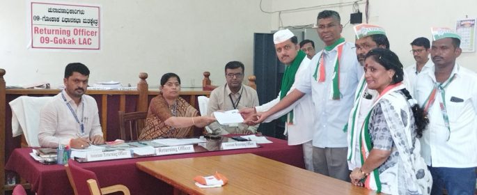 ಗೋಕಾಕ:ಕಾಂಗ್ರೆಸ್ ಪಕ್ಷದ ಅಧಿಕೃತ ಅಭ್ಯರ್ಥಿಯಾಗಿ ಕಡಾಡಿ ನಾಮಪತ್ರ ಸಲ್ಲಿಕೆ : ಕೆಪಿಸಿಸಿ ಕಾರ್ಯಾಧ್ಯಕ್ಷ ಸತೀಶ ಜಾರಕಿಹೊಳಿ ಸಾಥ್
