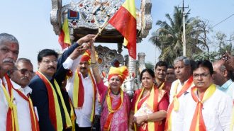 ಗೋಕಾಕ:ನಾಡದೇವಿ ಭುವನೇಶ್ವರಿ ಹಾಗೂ ಸಮ್ಮೇಳನದ ಸರ್ವಾಧ್ಯಕ್ಷರ ಮೆರವಣಿಗೆಗೆ ಶಾಸಕ ರಮೇಶ ಜಾರಕಿಹೊಳಿ ಚಾಲನೆ